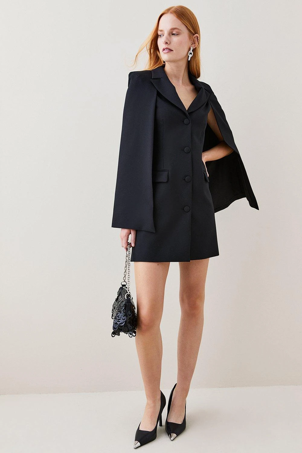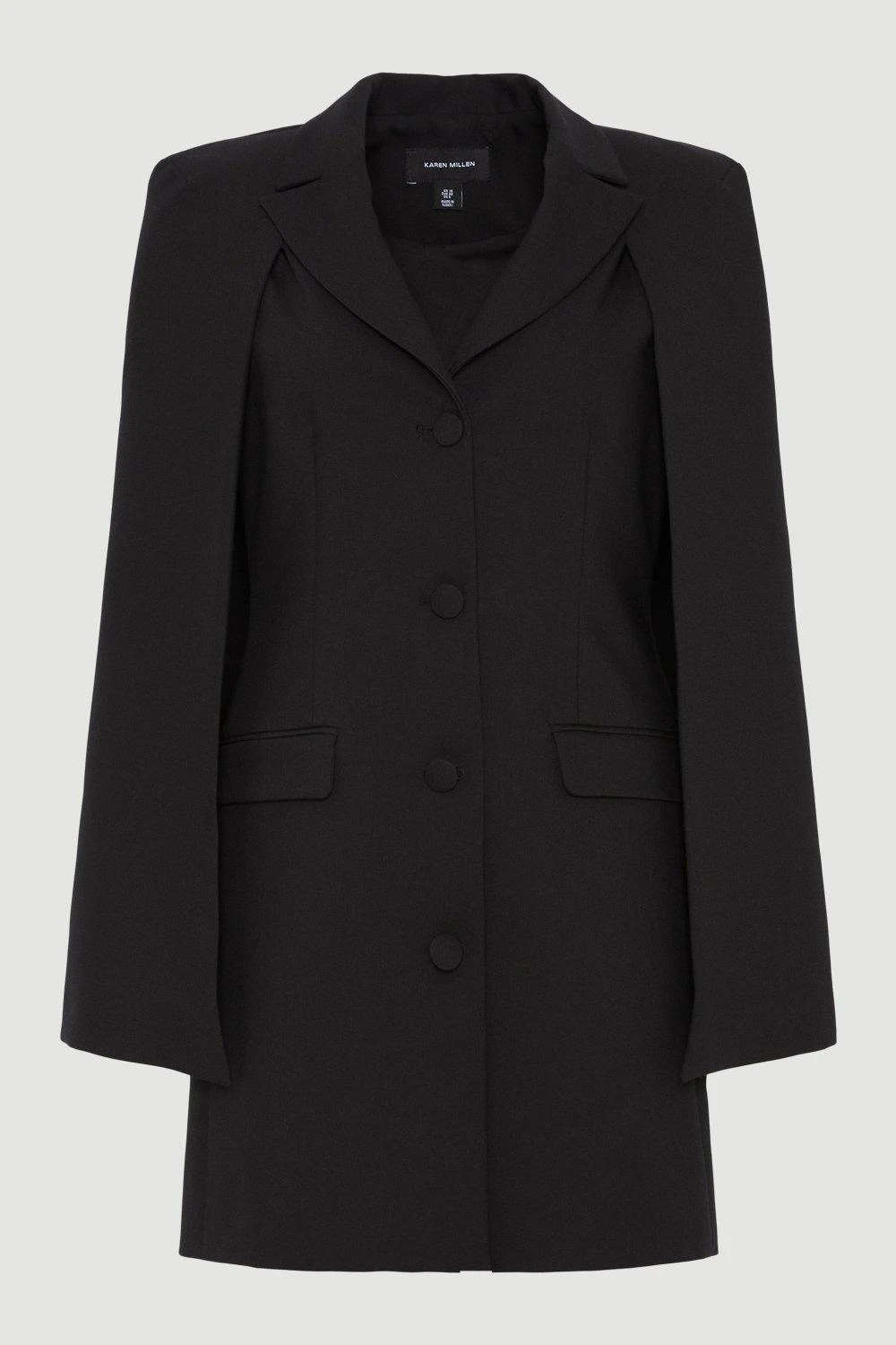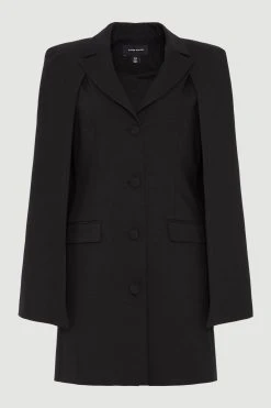 Allow power dressing to lead the way in the form of this sleek blazer dress. Sharp proportions give this piece a directional aesthetic, while cape sleeve details add a touch of sartorial drama. Notched lapels and flap pockets nod to traditional tailoring.