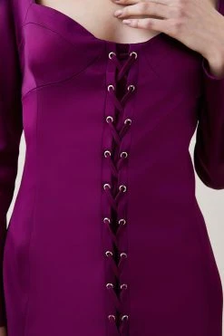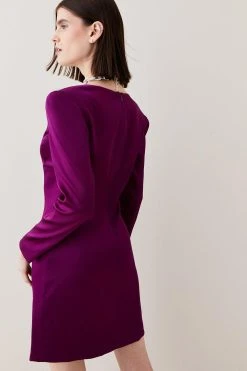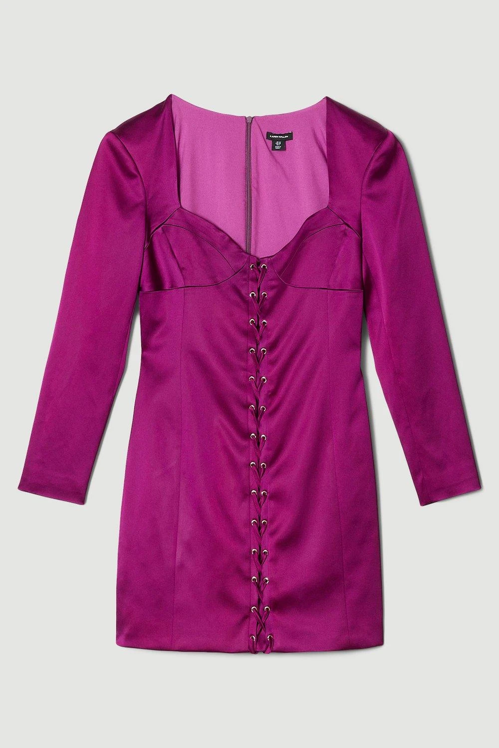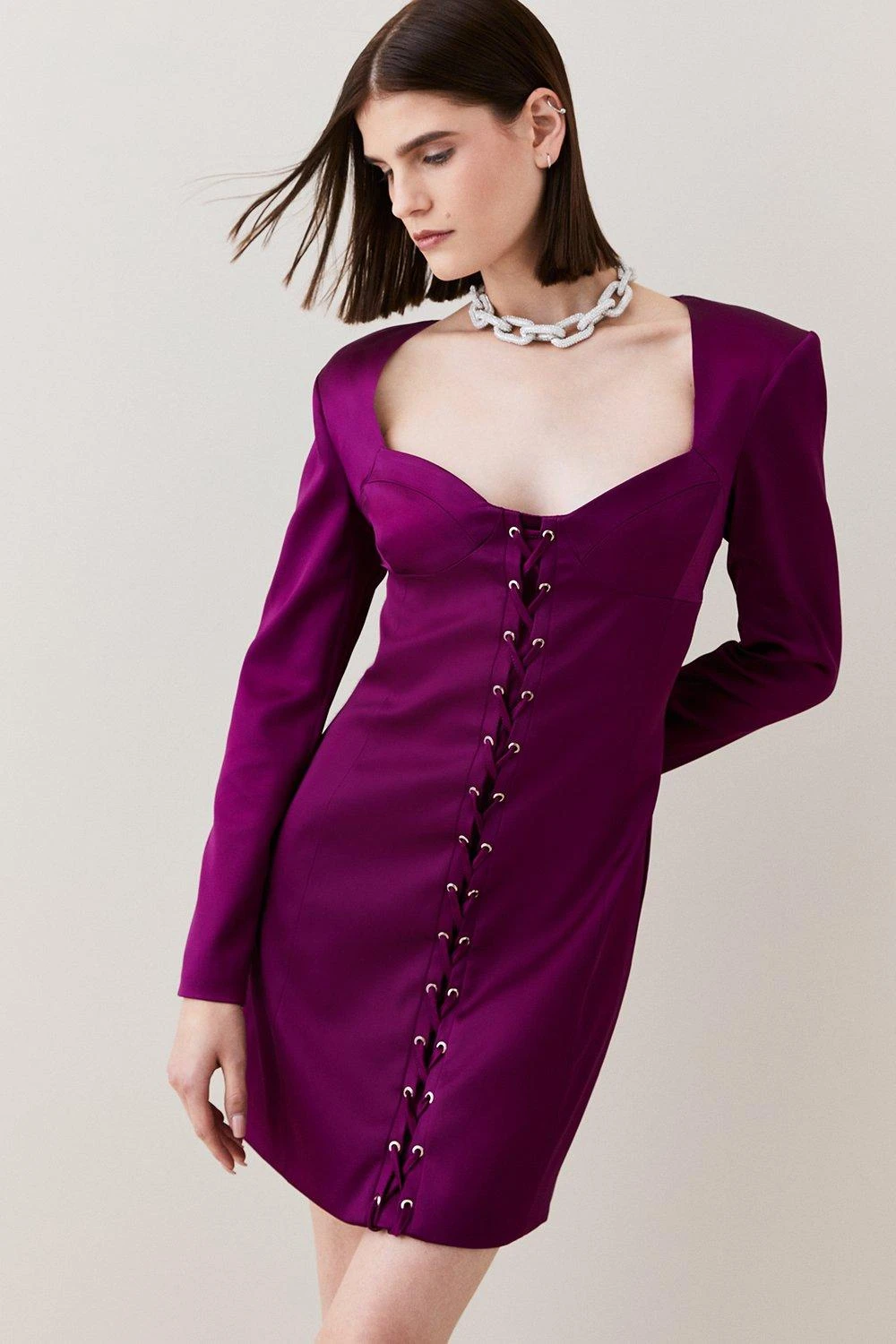 Crafted from lustrous structured Italian satin, this mini dress combines decadent details with everyday wearability. A front cross-over knot design adds a playful touch, while a sweetheart neckline gives feminine appeal. An invisible zip allows for easy fastening.