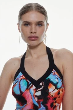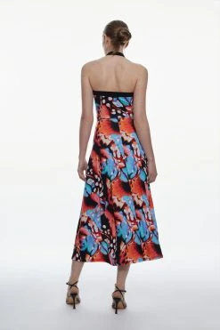 Designed with an entrancing butterfly print and vibrant colour palette, this midi dress exudes summer optimism. Jersey material elegantly falls down to a midi hemline to create a fluid silhouette. Style this piece with black strappy heels for a standout ensemble.