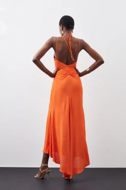 68% Viscose 27% Polyester 5% Elastane Gentle machine wash at 30 with similar colours. Model Height 5”10 – Model wears a S. Centre back length of a 10: 90cm